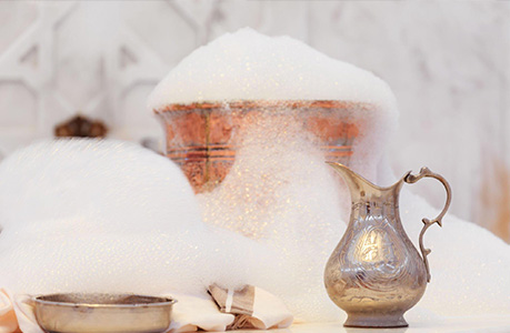 Botanica Spa & Wellness’da misafirlerin ve üyelerin keyfini çıkarabilecekleri kese ve köpük eşliğinde Geleneksel Türk Hamamı Deneyimi.