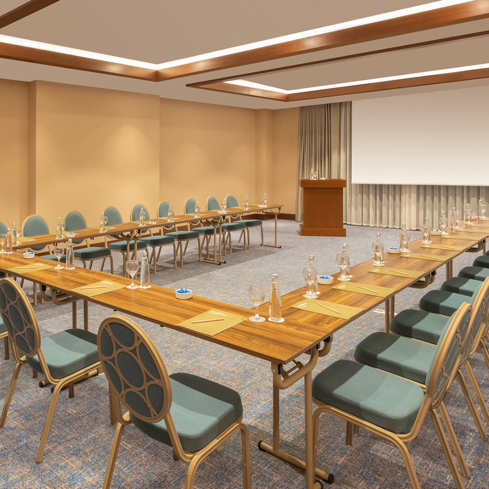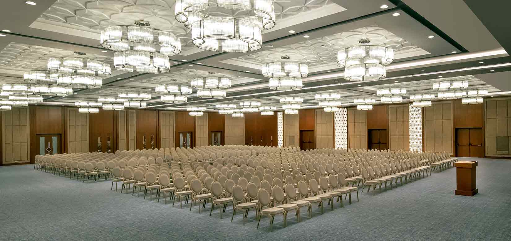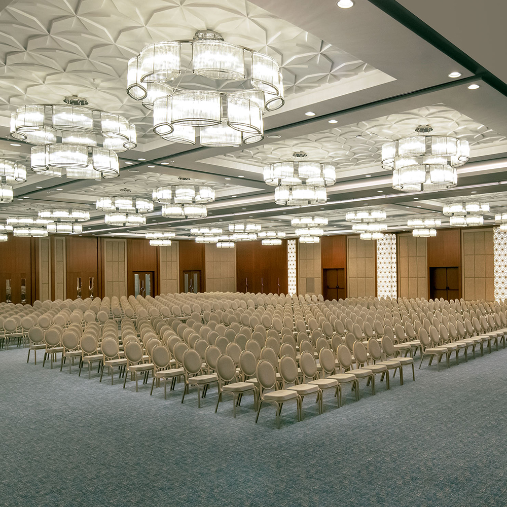 23 adet esnek toplantı salonuna ev sahipliği yapan otelimizde tüm toplantı odalarında, dokunmatik ekranlı, ücretsiz Wi-Fi ve modern AV ekipmanı ile uzaktan kontrol edilebilen, son model teknik ekipmanlar yer almaktadır. Otelimiz, 2200 kişiye kadar olan toplantı, konferans ve en lüks ziyafetlere hizmet edebilecek kapasiteye sahiptir. Ziyafetler ve etkinlikler için, ünlü şefler tarafından ustalıkla hazırlanmış, zengin bir mutfak menüsü sunmaktadır. İhtiyaçlarınız doğrultusunda işlevsel dekore edilmiş balo salonlarımız arasından seçim yapabilirsiniz.
