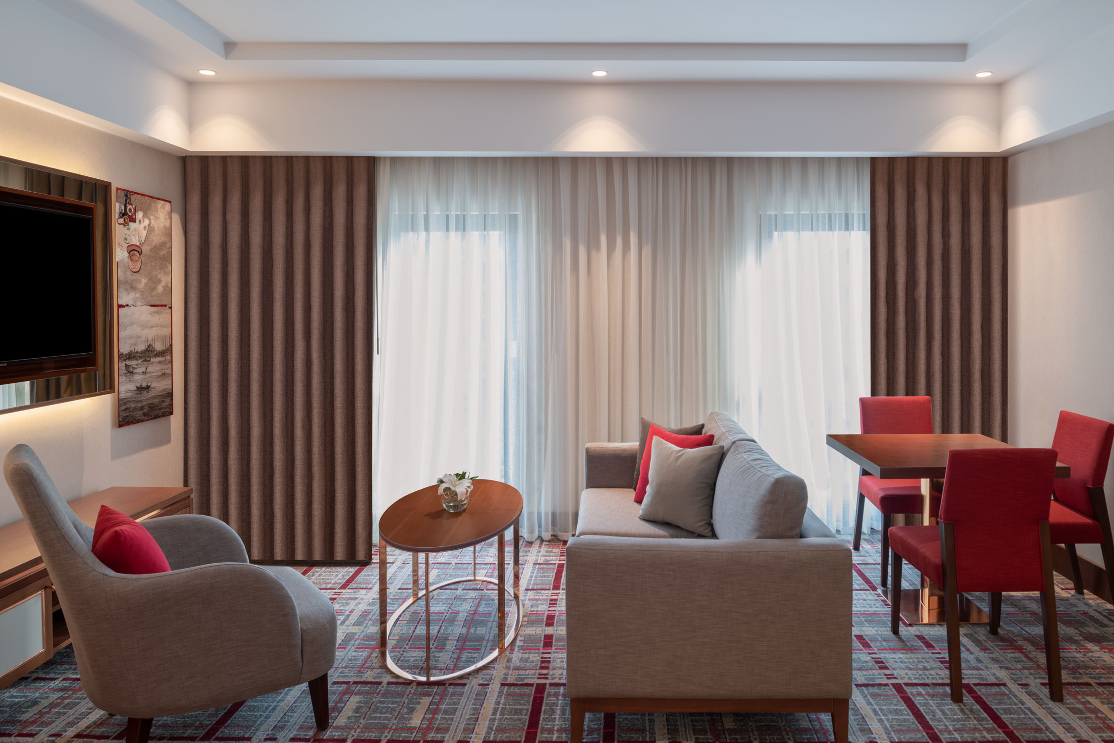 Lüks tasarımı ile dikkat çeken Corner Suit odalar'da, rahat ve huzurlu bir ortamda günün yorgunluğunu unutabilirsiniz. İş ve tatil amaçlı seyahat edenler için mükemmel bir seçimdir. Aynı zamanda geniş aile konaklamaları için ideal olan bağlantılı oda seçeneği de mevcuttur. Oda servisi günün 24 saati hizmetinizdedir. Ayrıca Botanica Spa & Wellness Center'da günün yorgunluğunu atabilirsiniz.